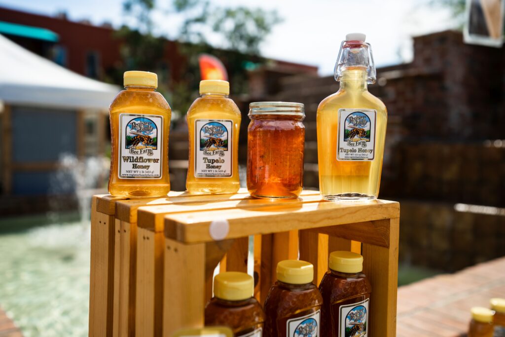 One of their most popular products is Tupelo honey, made from the nectar honeybees gather from White Tupelo trees. The Registers harvest their spring honey and move the hives to locations with high concentrations of White Tupelo, yielding the purest Tupelo honey possible.