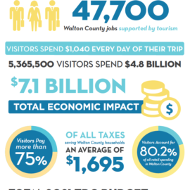 But perhaps the greatest reward came from seeing the positive impact that these travelers have on the residents of our home community. In 2021 in Walton County, 47,700 jobs were supported by tourism. Visitors also provided 75% of Walton County government revenues. This saved each local household an average of $1,695 in taxes. Overall, the total economic impact of tourism in 2021 was nearly $7.2 billion – a 35% increase over 2020!